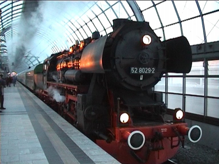 Lok 52 8029, hier mit ihrer EDV-Nummer, anlässlich einer Sonderfahrt nach Rügen in Bahnhof Berlin-Spandau.